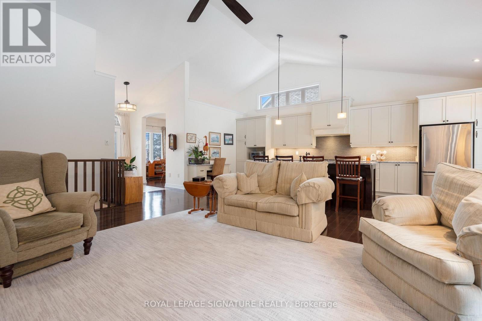 Style and sophistication define this exceptional executive bungalow offering over 2,600 sq ft of finished living space on a spectacular lot in one of Port Dover's most prestigious neighbourhoods. Built in 2009 and upgraded to perfection, this move-in-ready home showcases modern colours,quality finishes, and thoughtful design throughout. The custom kitchen is a true showpiece,featuring an oversized island, marble countertops, stone backsplash, and stainless steel appliances, while a separate dining room and open-concept great room create an ideal space for entertaining, complete with cathedral ceilings, a striking limestone fireplace, built-in media storage, and wide plank hardwood flooring throughout most of the main level. The spacious primary suite offers a large walk-in closet and a spa-inspired ensuite with granite counters,vessel sinks, oversized walk-in shower, and a freestanding floor-mounted bathtub. Additional main-floor bedroom, a beautifully updated 3-piece bath with walk-in shower, and a generous laundry room with garage access complete the level. The mostly finished basement expands the living space with a large recreation room behind elegant French doors, two spacious bedrooms, a3-piece bath with walk-in shower, a versatile office with ample storage, a second kitchen area,and a utility room offering even more storage. The private, landscaped backyard backs onto Black Creek Conservation Area and is an entertainer's dream, featuring a covered porch, stone patio, armour stone, river rock, perennial gardens, and mature trees that provide breathtaking fall colour. Recent updates include upgraded shingles, resurfaced driveway, and custom drapery valued at over $8,000. Ideally located near just minutes from Port Dover's beach, marina, theatre, shops,restaurants, and downtown core, this home offers the perfect blend of luxury, comfort, and lifestyle in one of Norfolk County's most sought-after lakeside communities. (id:2469)